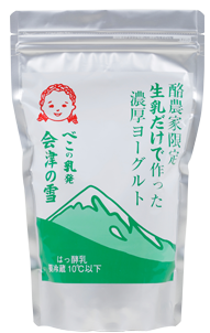 搾りたての会津産の生乳をさらにもうひと搾り、低温濃縮(RO)製法による濃 厚なヨーグルトデザートです。熱をかけずに水分だけを搾ることで生乳風味を損なうことなく濃縮。無添加だから濃厚なのにしつこくなく、チーズのようなコクと“雪のような”くち どけが魅力。添加物を一切使用しない、生乳100%のこだわりが生んだ美味しさです。